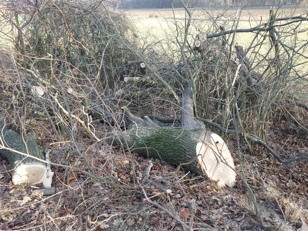 2 - Pokácený strom na Hájové cestě. Dub částečně zpracovaný. Odhadovaný objem 2 prm.